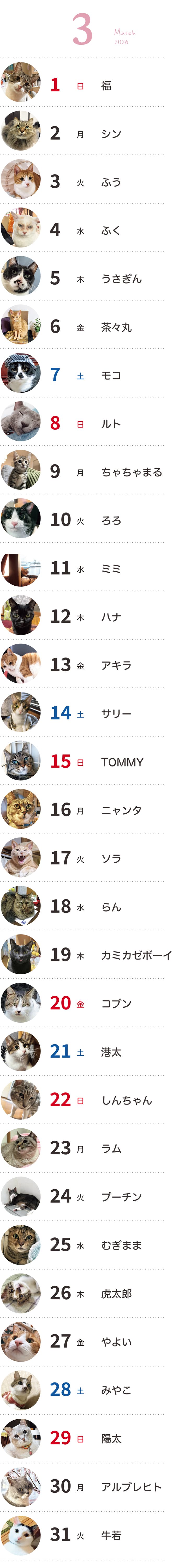 HOME | 2026年版 365日のふくおかの猫カレンダー | 3月|365日のふくおかの猫カレンダー カレンダートップページへ 1月 2月 3月 4月 5月 6月 7月 8月 9月 10月 11月 12月