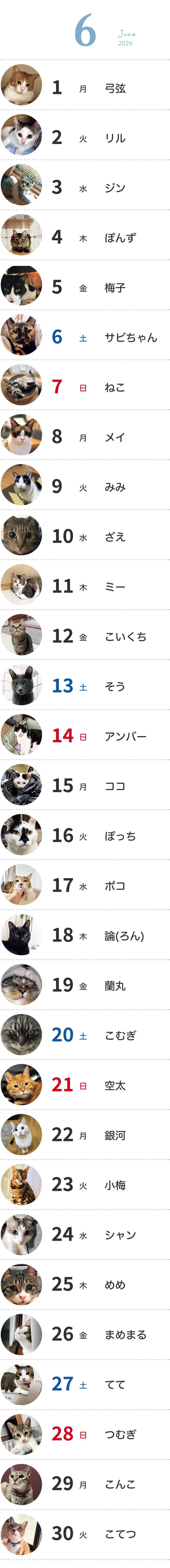 HOME | 2026年版 365日のふくおかの猫カレンダー | 6月|365日のふくおかの猫カレンダー カレンダートップページへ 1月 2月 3月 4月 5月 6月 7月 8月 9月 10月 11月 12月