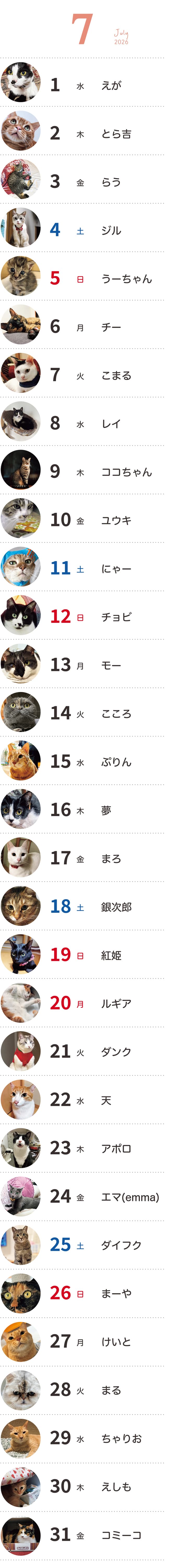 HOME | 2026年版 365日のふくおかの猫カレンダー | 7月|365日のふくおかの猫カレンダー カレンダートップページへ 1月 2月 3月 4月 5月 6月 7月 8月 9月 10月 11月 12月
