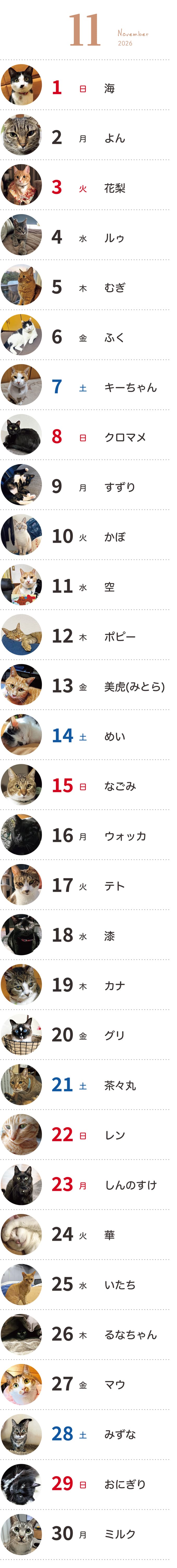 HOME | 2026年版 365日のふくおかの猫カレンダー | 11月|365日のふくおかの猫カレンダー カレンダートップページへ 1月 2月 3月 4月 5月 6月 7月 8月 9月 10月 11月 12月